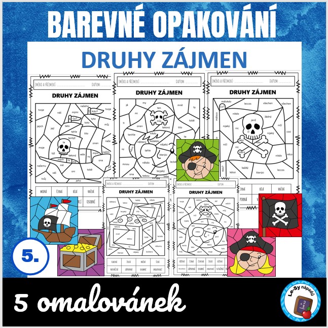 •5 pracovních listů ve formě omalovánky ke třídění zájmen podle druhu, formát A4