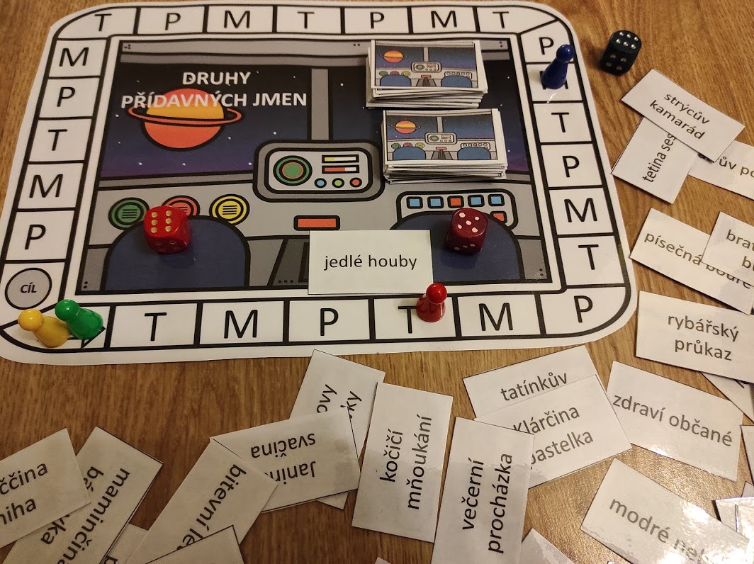 •108 kartiček se slovními spojeními s přídavnými jmény (36 tvrdých, 36 měkkých a 36 přivlastňovacích)