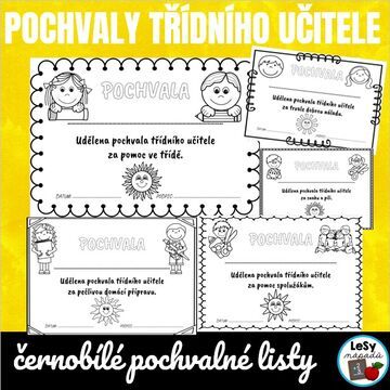 - 10 pochvalných listů ve stejném provedení, ale s linkou k doplnění za co pochvalný list je