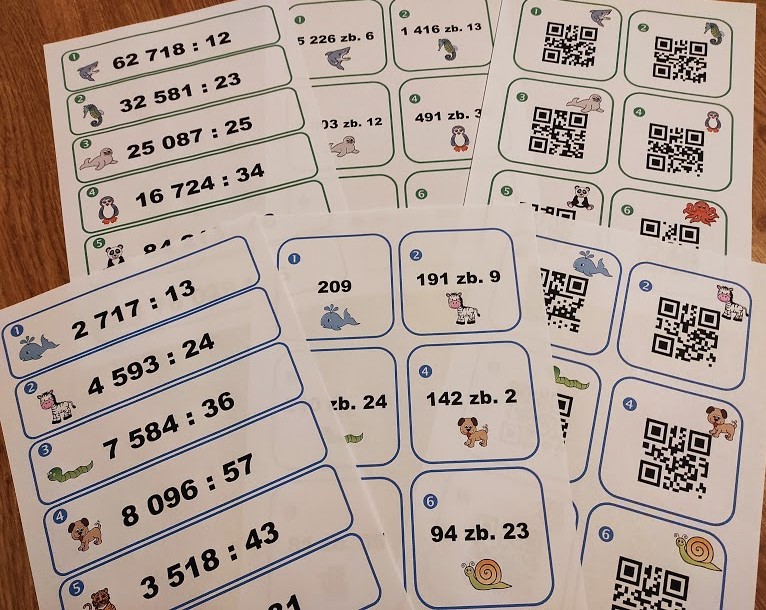 použití: písemné dělení dvojciferným dělitelem, běhací diktát, pohybová aktivita, práce s QR kódy, trénink paměti