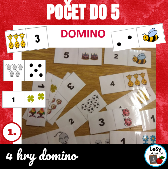 - 2 domina po 14 kartičkách s počtem prvků do 5 (obrázek + počet puntíků)