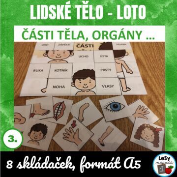 použití: lidské tělo, části těla, orgány, kostra, skládačka, loto, didaktická hra, relaxace