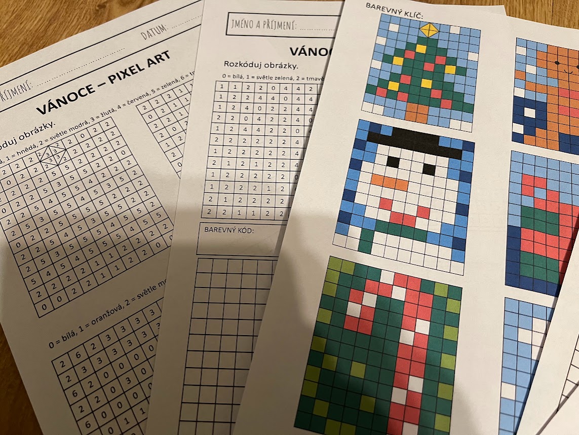 •celkem 2 oboustranné pracovní listy na formátu A4 (listy jsou shodné, liší se kódem – buď čísla nebo vánoční symboly)