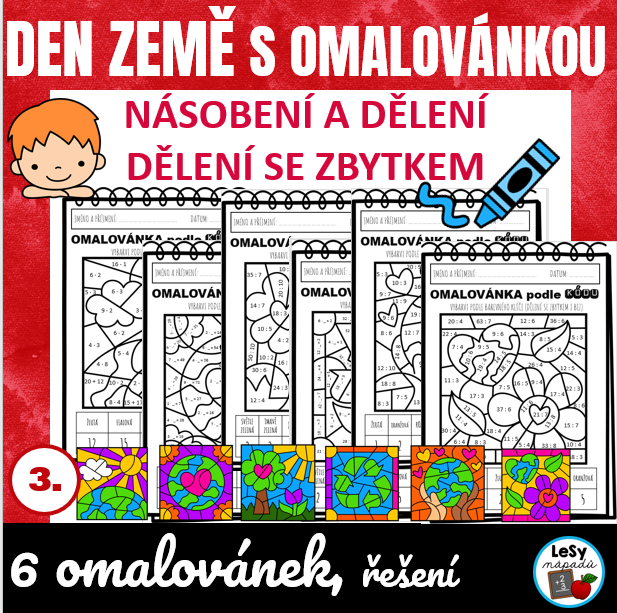 •6 pracovních listů ve formě omalovánky k opakování násobení a dělení, včetně dělení se zbytkem, formát A4