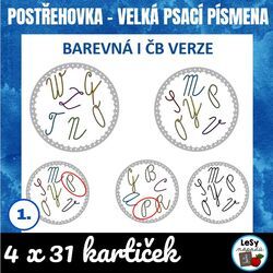 2 x 2 verze hry Postřehovka s velkými psacími písmeny, každá ve dvou provedeních (barevná i čb verze)