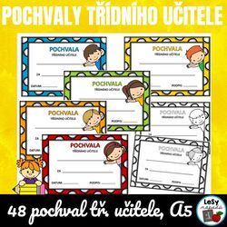 40 barevných a 8 černobílých pochval třídního učitele na formátu A5