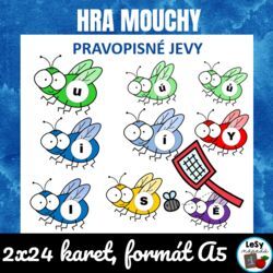 Karty s čísly do 20 a karty k procvičení pravopisných jevů formou hry, formát A5.