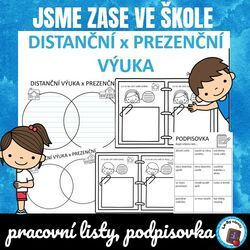 Pracovní listy k porovnání prezenční a distanční výuky, hra podpisovka pro první den ve škole.