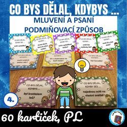 60 kartiček s otázkami k rozvoji kreativního myšlení spolu s formuláři pro psaní.