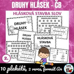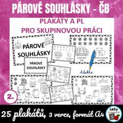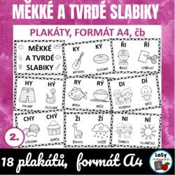 Sada barevných a čb plakátů s měkkými a tvrdými souhláskami.