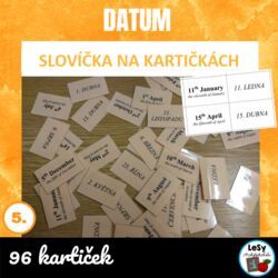 Slovíčka na kartičkách k přiřazování data v češtině a angličtině.
