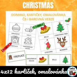 Slovní zásoba v angličtině k tématu Vánoce, včetně omalovánky a hry domino.
