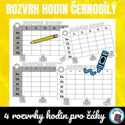 Černobílý rozvrh ke stažení pro žáky s 5 vyučovacími hodinami.