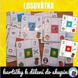 Kartičky k rozlosování žáků do skupin, např. do dvojic, trojic, skupiny po 4, dělení na 2 či 3 skupiny apod.