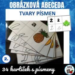 4 hry domino s obrázky a různými typy písma, každá hra po 20 kartiček na dvou listech A4