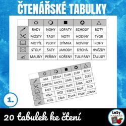 20 tabulek ke čtení písmen a slov pro genetickou metodu čtení