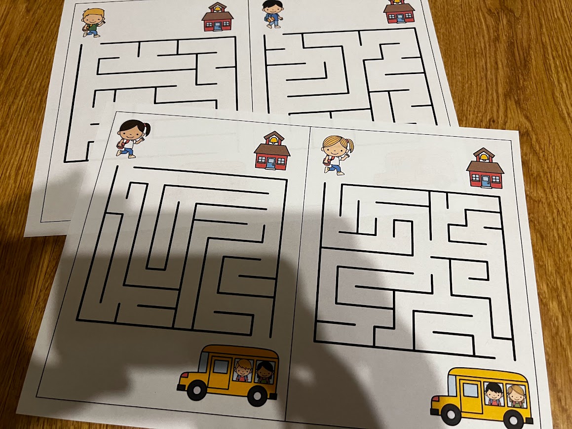 •bludiště – 4 barevné a 4 čb karty formátu A5, 2 stupně obtížnosti bludišť