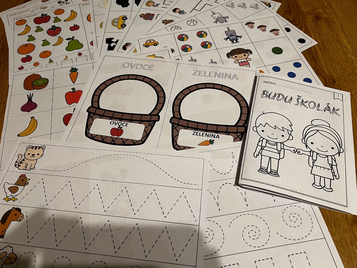 OKRUHY: zápis do 1. ročníku, pamětní knížka, ovoce, zelenina, zvířata, hračky, počet do 5, omalovánka, domino, bludiště, stínové obrázky, orientace na ploše