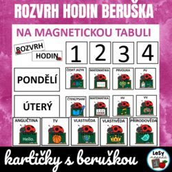 Kartičky s obrázkem krtka pro sestavení rozvrhu na magnetickou tabuli.