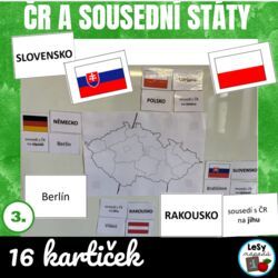 16 kartiček k přiřazení - sousední státy s ČR