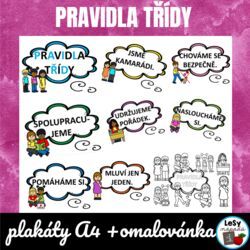 7 plakátů s pravidly třídy a omalovánka na formátu A4 s obrázky