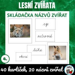 40 kartiček ke skládání 20 názvů zvířat a přiřazení obrázku