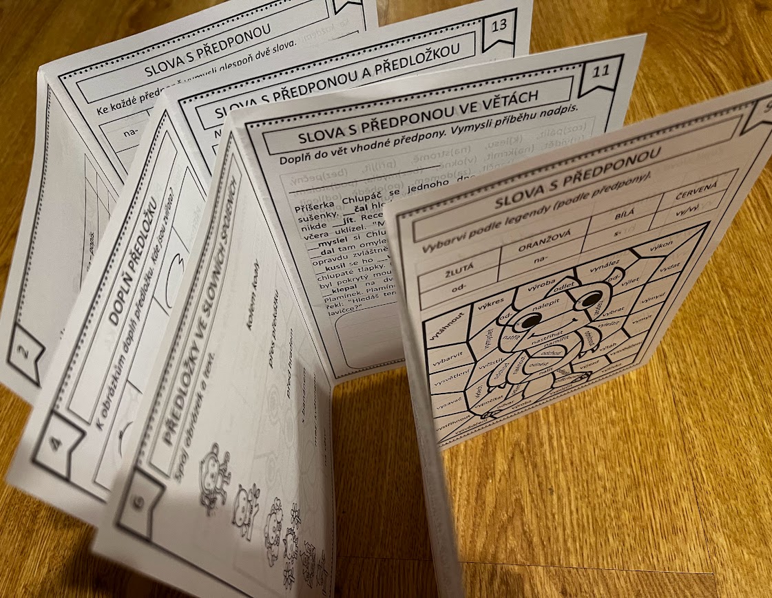 OKRUHY: předpony, předložky, stavba slova, pravopis předpon a předložek, příšerky, sloh, nadpis příběhu, doplňovací cvičení, čtení s porozuměním