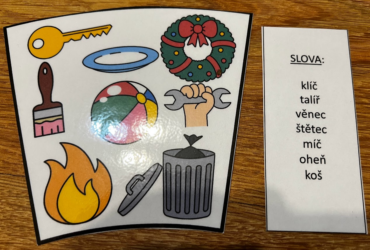 •součástí skládačky jsou i kartičky se slovy (lze přiřazovat kartu s obrázky a kartu se slovy k danému vzoru)