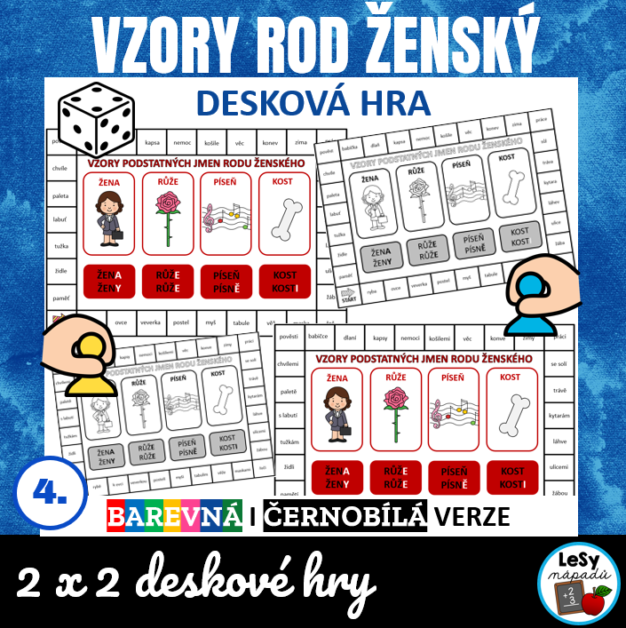 •1 desková hra v barevné i čb verzi slouží k určení vzorů podstatných jmen (podstatná jména jsou v různých pádech) těžší varianta
