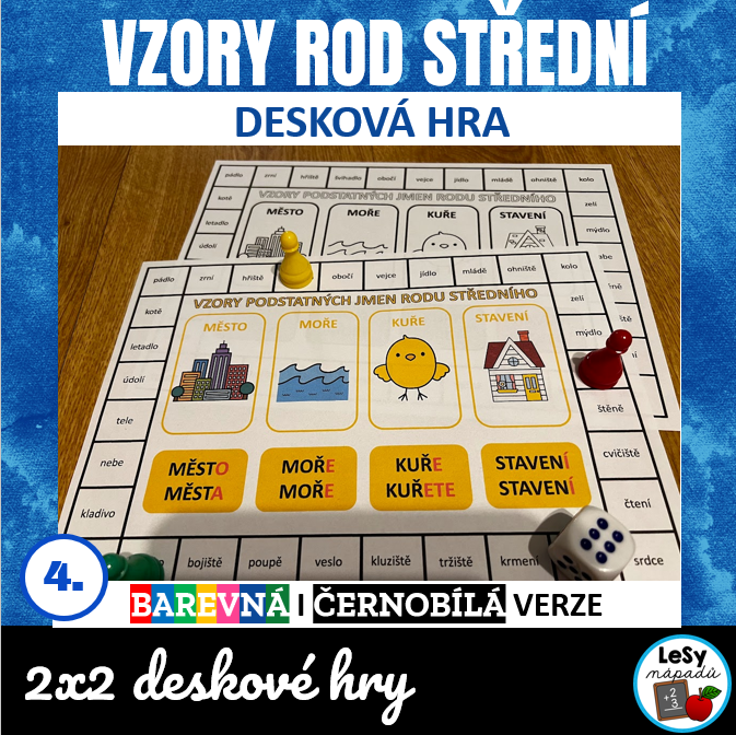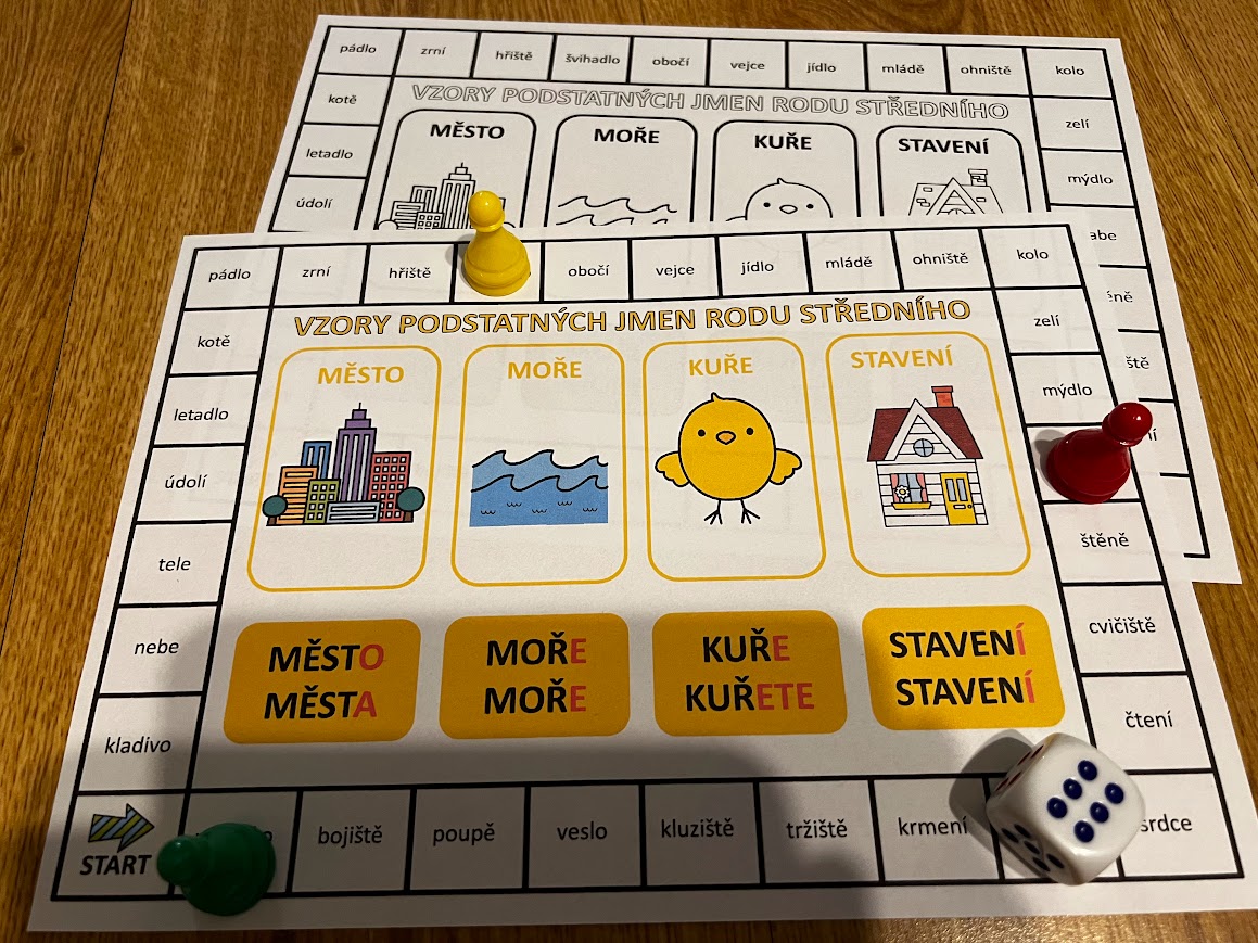 •1 desková hra v barevné i čb verzi slouží k určení vzorů podstatných jmen (podstatná jména jsou v různých pádech) těžší varianta