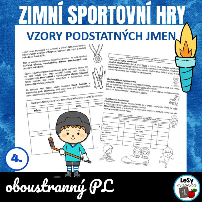 OKRUHY: podstatná jména, rod podstatných jmen, vzory podstatných jmen, pády podstatných jmen, sport, olympiáda