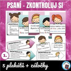 Plakáty na formátu A4 a záložky pro děti s pravidly pro kontrolu psaní.