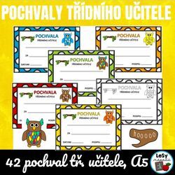 40 barevných a 8 černobílých pochval třídního učitele na formátu A5