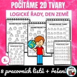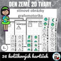 Den Země - počítání tvarů, grafomotorika, kolíčkové kartičky se stínovými obrázky, logické řady.
