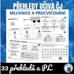 33 přehledů učiva českého jazyka 1.stupně na formátu A4 s procvičováním
