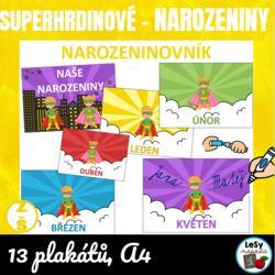 13 plakátů k zápisu narozenin dětí k jednotlivým měsícům v roce