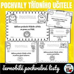 Pochvalné listy (pochvala třídního učitele) v černobílém provedení.