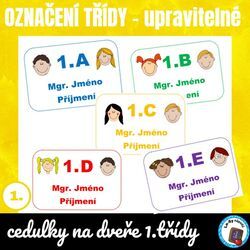 Upravitelné cedulky na dveře třídy nebo šatny v 1. ročníku pro snazší orientaci dětí.