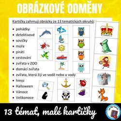 Obrázkové odměny pro děti na malých kartičkách z 13 různých témat.