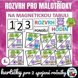 Rozvrh hodin na magnetickou tabuli s hrochem a krokodýlem pro 2 spojené ročníky.