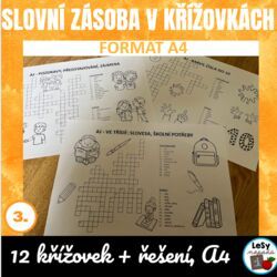 22 tematických čtvercových skládaček, více než 400 základních slovíček s obrázky