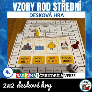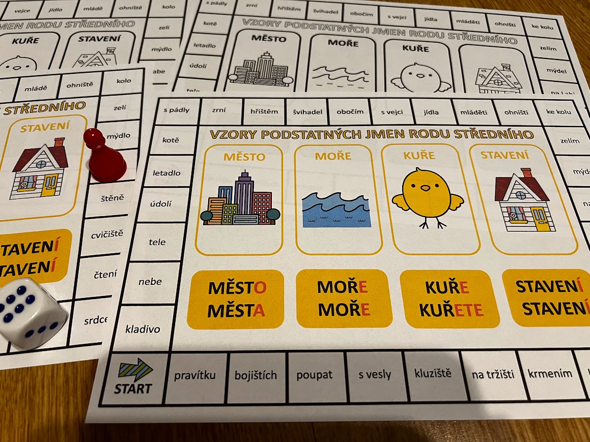 •1 desková hra v barevné i čb verzi slouží k určení vzorů podstatných jmen (podstatná jména jsou v různých pádech) těžší varianta