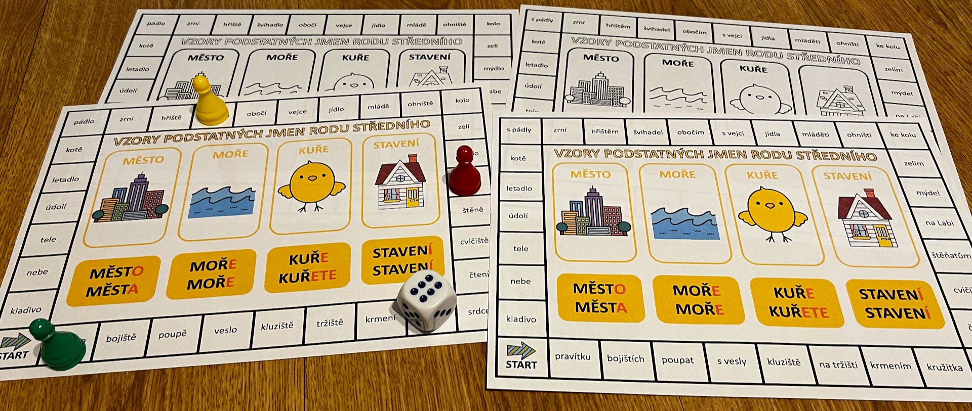 •1 desková hra v barevné i čb verzi slouží k určení vzorů podstatných jmen (podstatná jména jsou v 1. pádu čísla jednotného) – snazší varianta