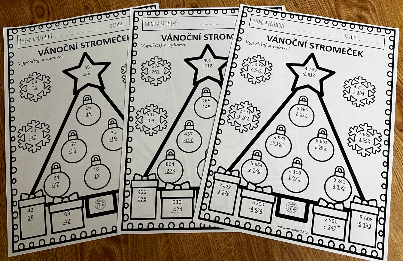 OKRUHY: písemné sčítání, písemné odčítání, Vánoce, vánoční stromeček, dárky, advent